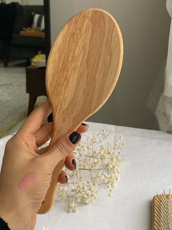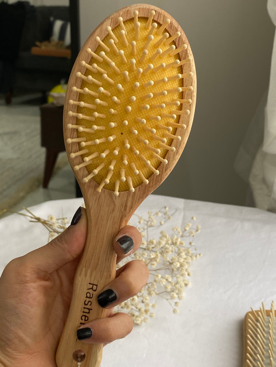 برس مو چوبی با دندانههای طبیعی چوبی به تقویت مو کمک کرده و چربیهای طبیعی مو را یکنواخت توزیع میکند. این برس دوام زیادی داشته و دارای خواص درمانی است.