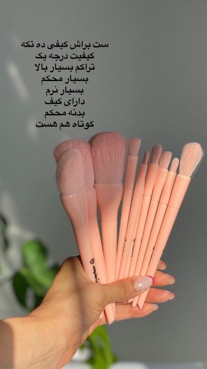 کیف براش بسیاااار نرمه بدنه کاملا مقاوم و نشکن داره پرتراکمه ۱۰ عددیه برای سایه، گونه، کرم پودر،کانتور، ابرو ، رژگونه … استفاده میشه کیف داره