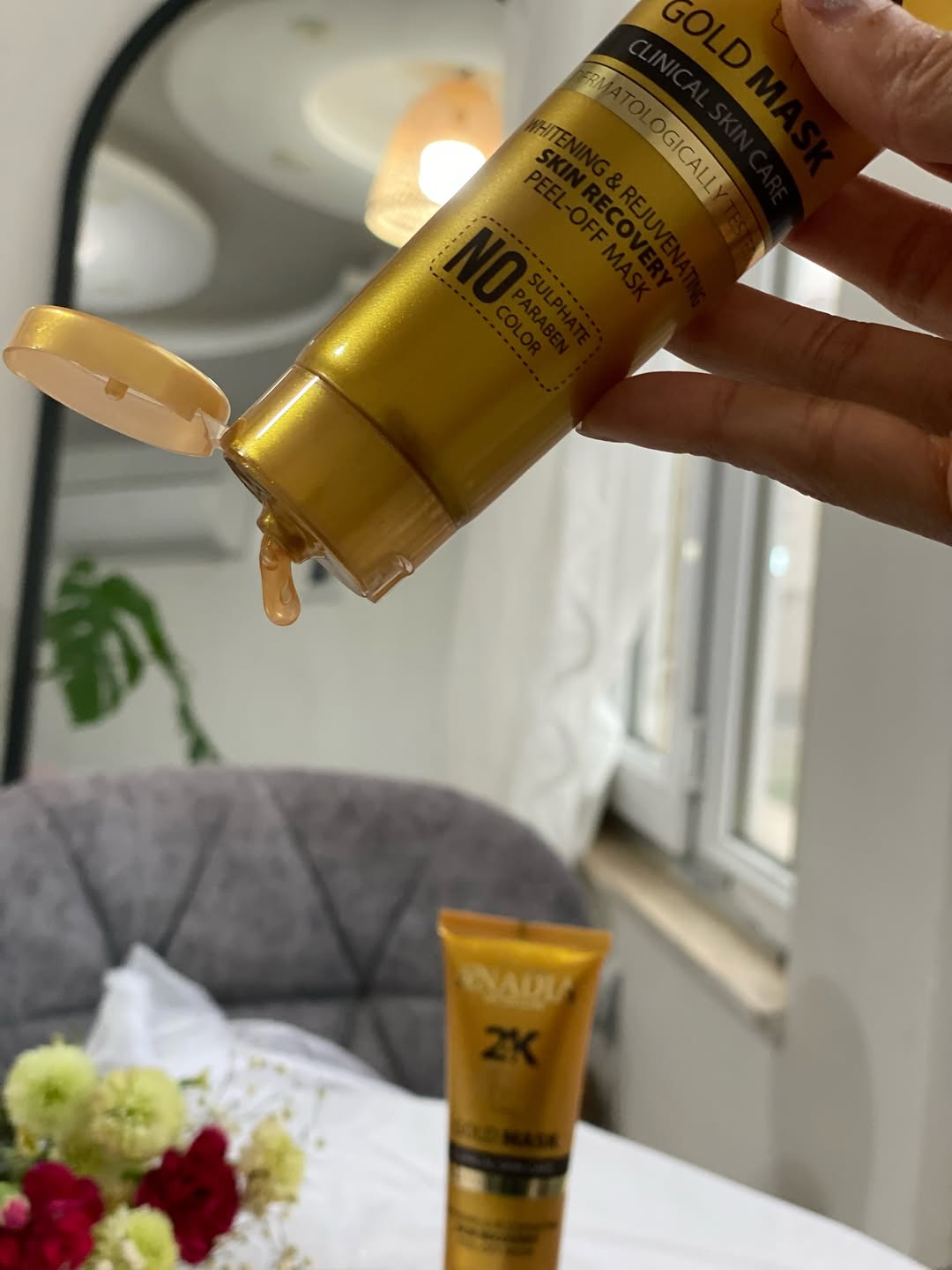جوان کننده پوست کمک به رفع چین و چروک پوست شفاف کنندگی بسیار قوی لایه برداری عمیق آبرسانی بالا حاوی پیگمنت طلا به صورت پیل اف هستش ینی بعد از استفاده بعد از ۱۵دقیقه از روی پوست میتونید بکنید